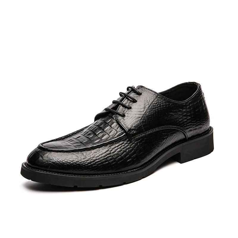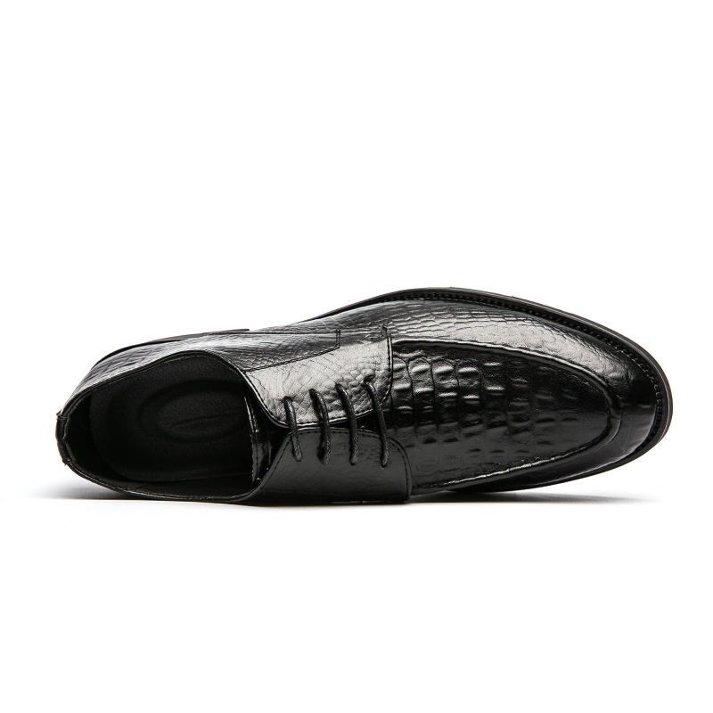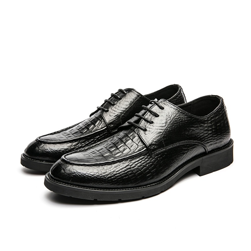 Men's Fashion Retro Crocodile Pattern Business Casual Leather Shoes Low Top Lace-up Large Size Leather Shoes
