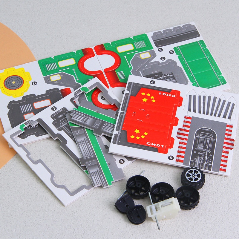 Pull Back Inertia Locomotive Model Paper3d Three-dimensional Puzzle Engineering Car Handmade Diy Boy Toy