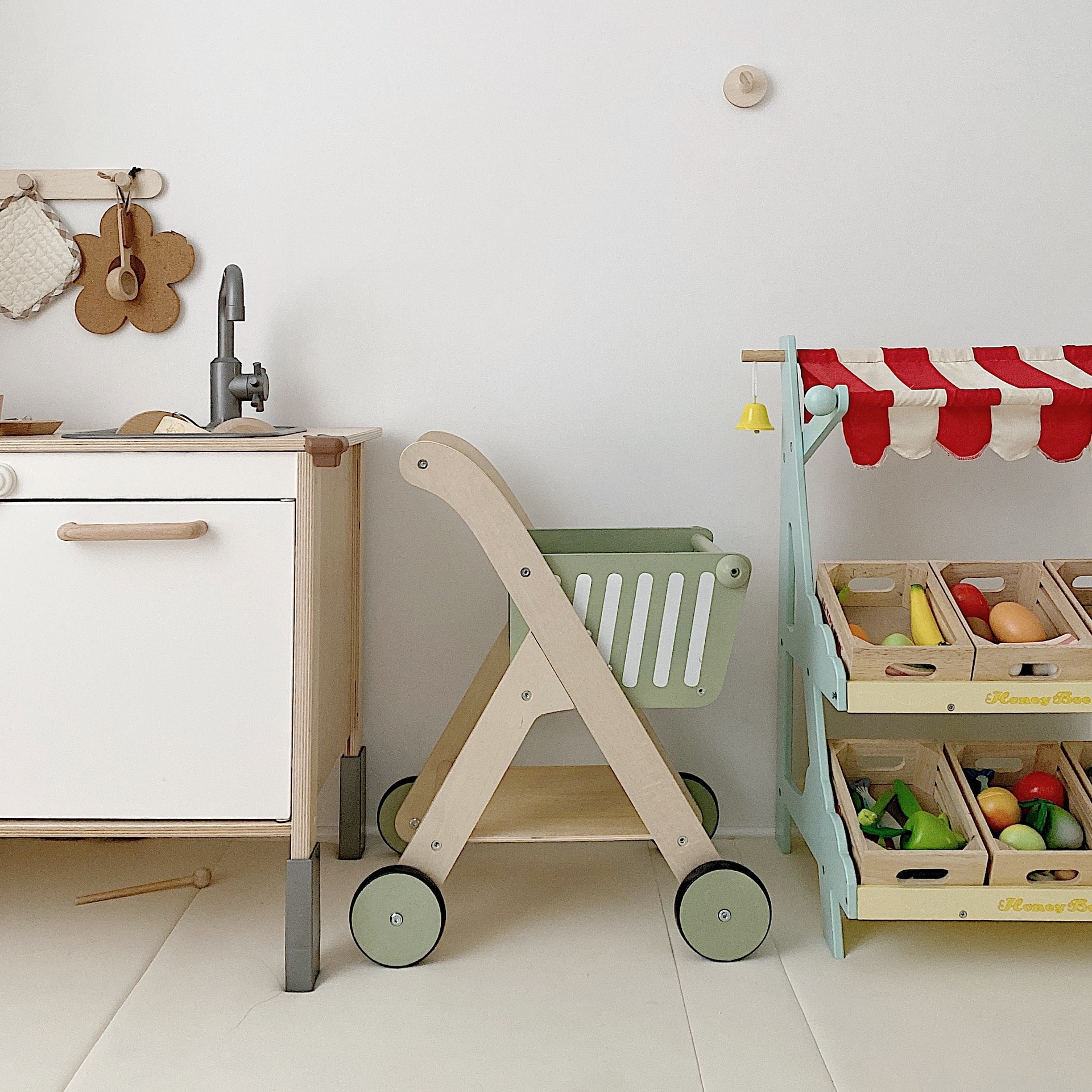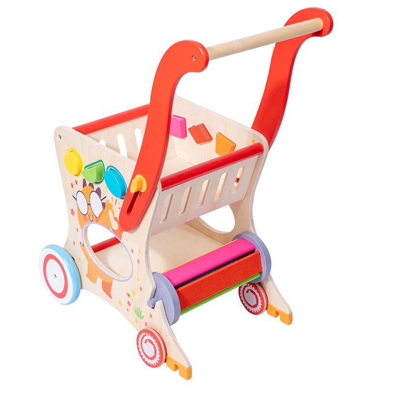 Children's Wooden Multifunctional Trolley Walker Toy Boys And Girls Early Education Educational Shopping Cart Toy