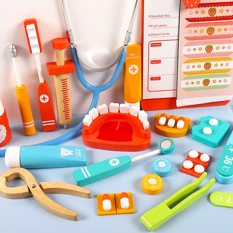 Children's Wooden Doctor Toy Simulation House Injection Dentist Role-playing Toy Puzzle Game