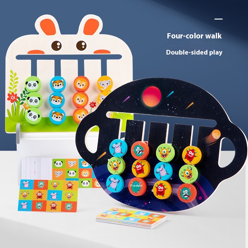 Wooden Montessori Teaching Aids Four-color Dinosaur Animal Game Enlightenment Logical Thinking Space Orientation Training Educational Toys