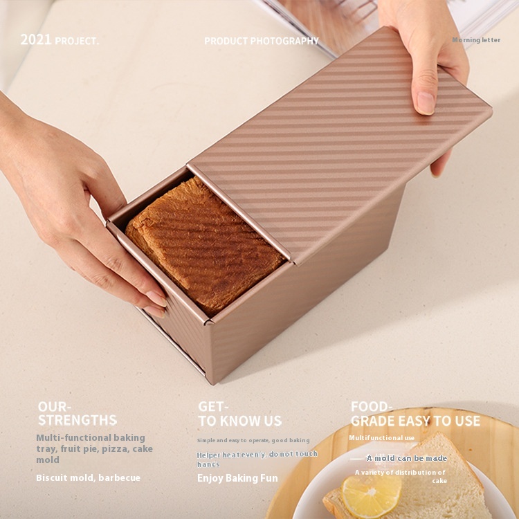 SRectangular Golden Corrugated Toast Box With Lid450g Bread Toast Mold Non-stick Baking Cake Mold
