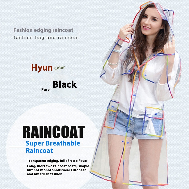 Foreign Trade Raincoat Adult Eva Colorful Edging Transparent Fashion Outdoor Travel Raincoat Parent-child Raincoat Thickened