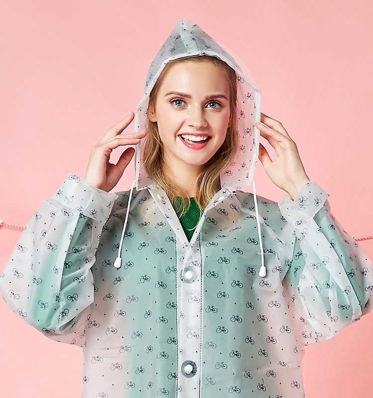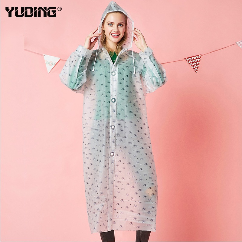 EVAAdult Raincoat Adult Can Be Cut Male And Female Students Fashion Printing Korean Transparent Raincoat