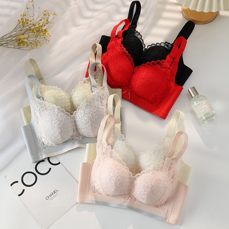 No Side Bone Adjustment Underwear Small Chest Gather Anti-sagging Sexy Lace Bra Women No Steel Ring Comfortable Side Breast