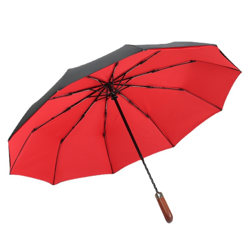 Umbrella Fully Automatic Double-layer Umbrella10 Bone High-grade Wind-resistant Solid Wood Handle Three-fold Double Men's Business Umbrella