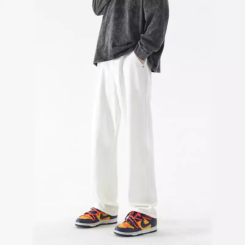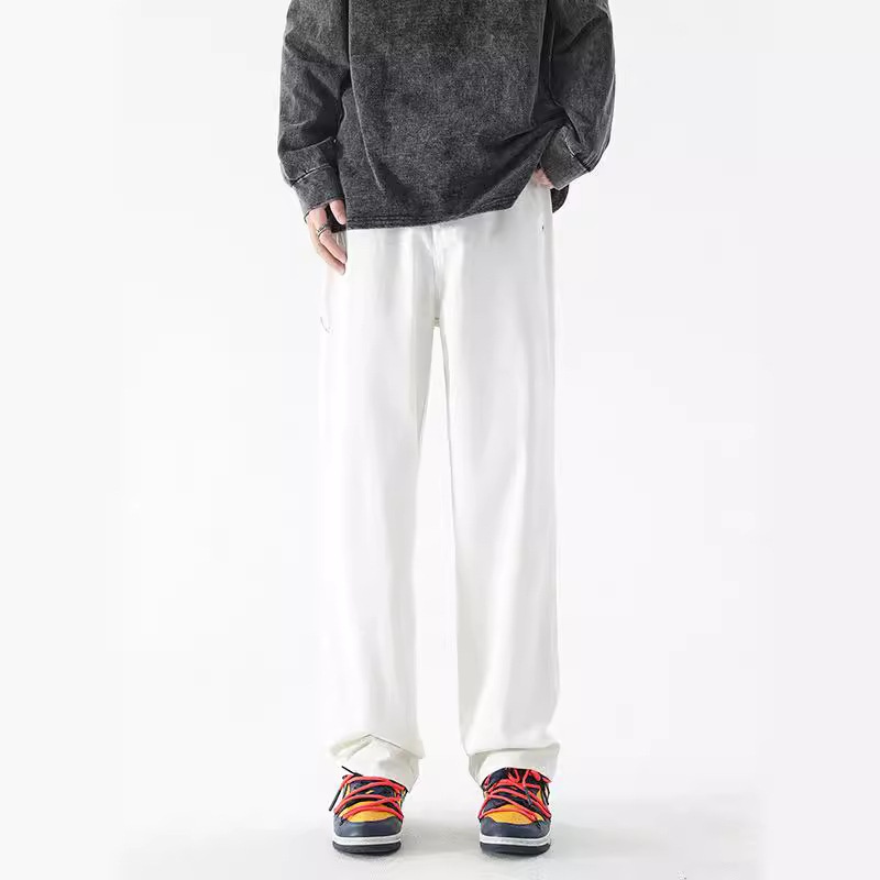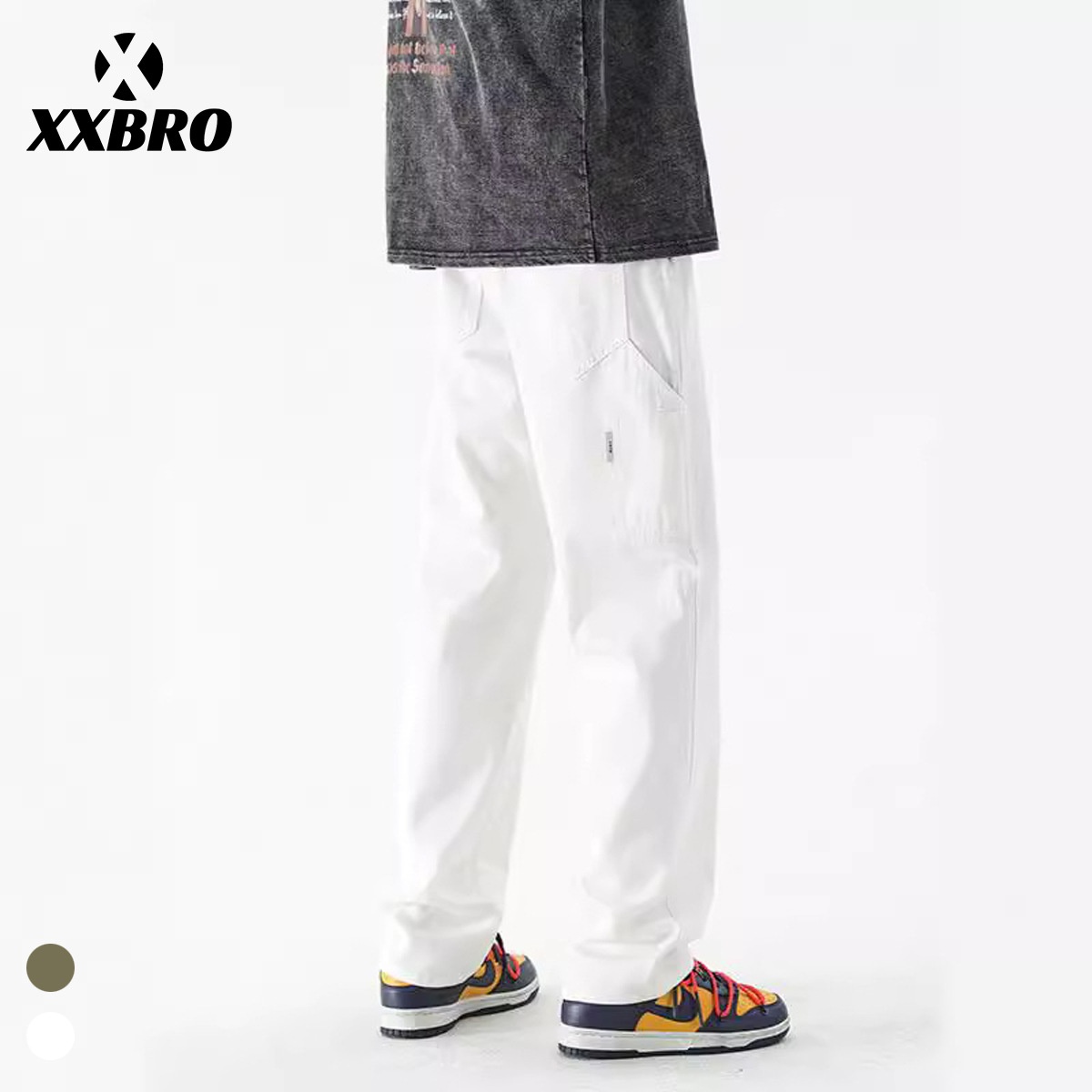 Xxbro Men's Clothing#Americany Cleanfit High Street White Jeans Straight Loose Logging Pants Long Pants