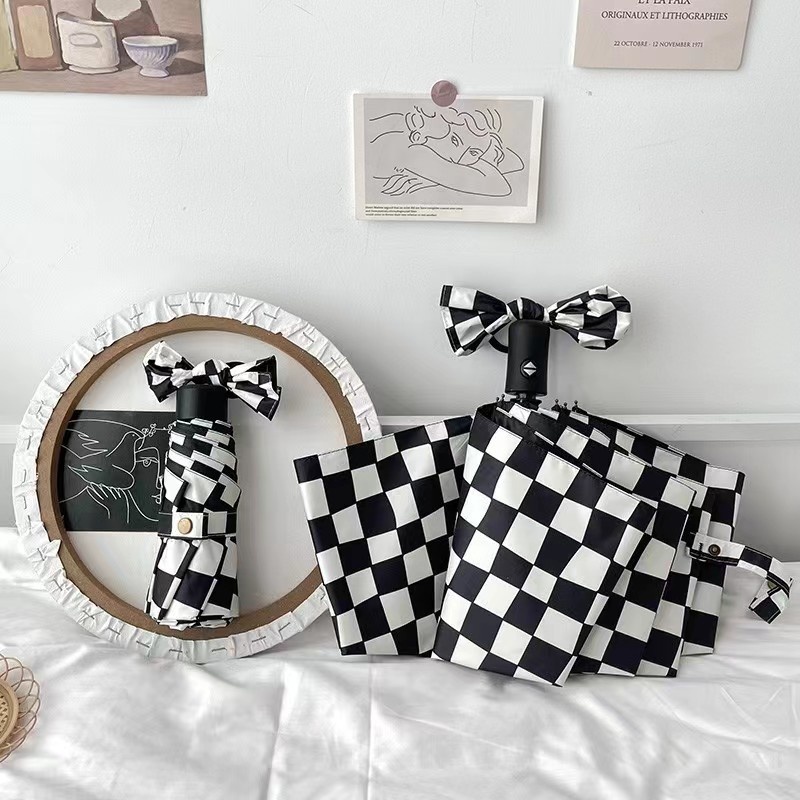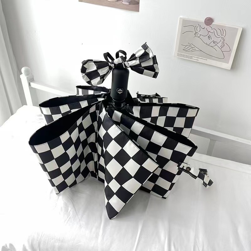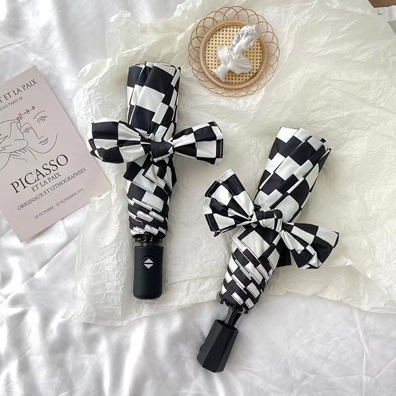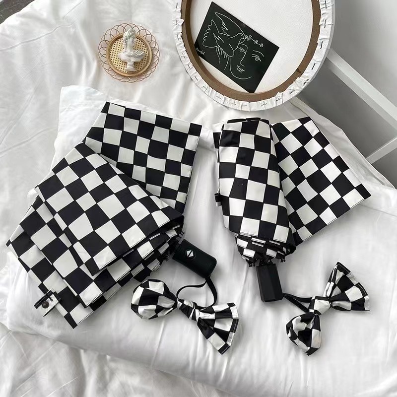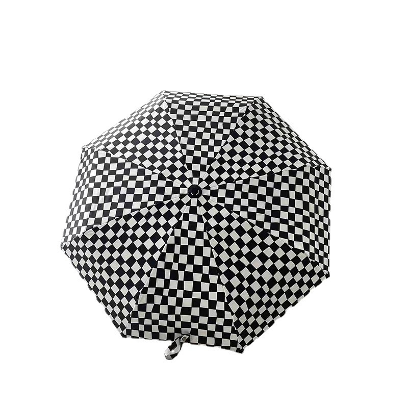 Retro Fully Automatic Sunny And Rainy High-value Chessboard Parasol Sun Umbrella Sunscreen Grid Black Plastic Umbrella