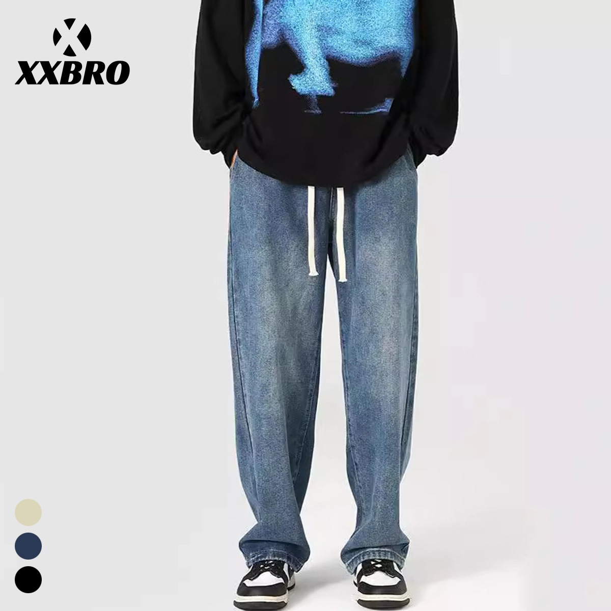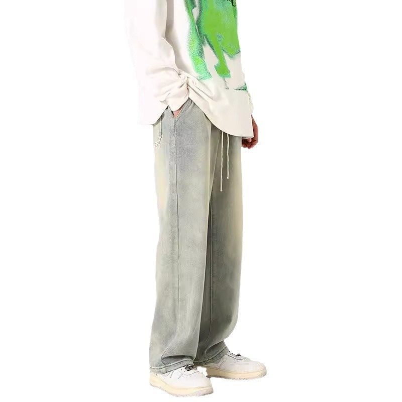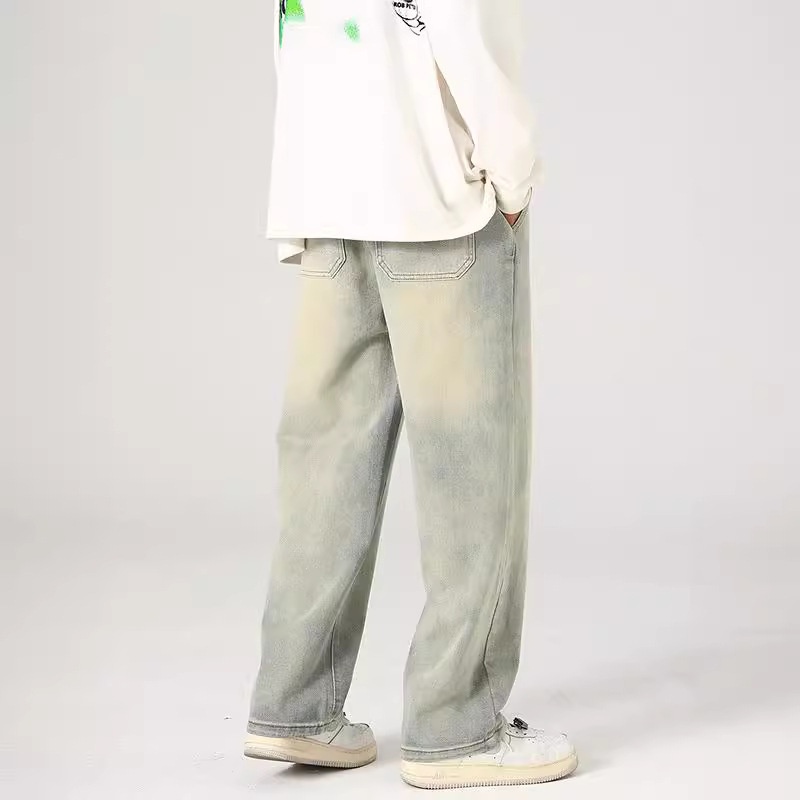 Xxbro Men's Wear#Hong Kong Style Straight Washed Yellow Mud Dyed Jeans Men's And Women's Pants