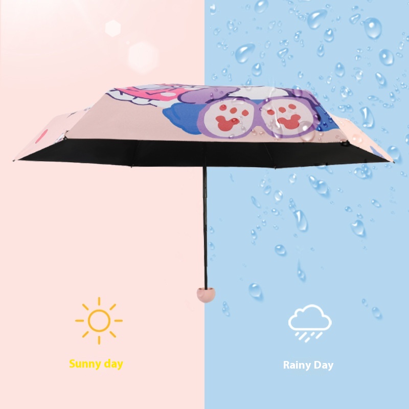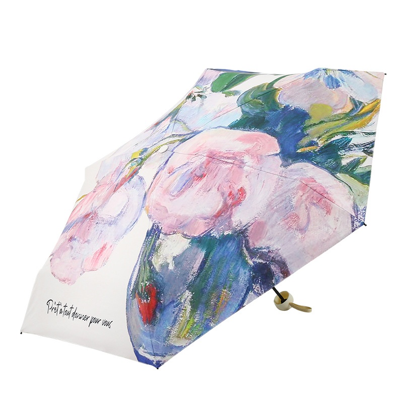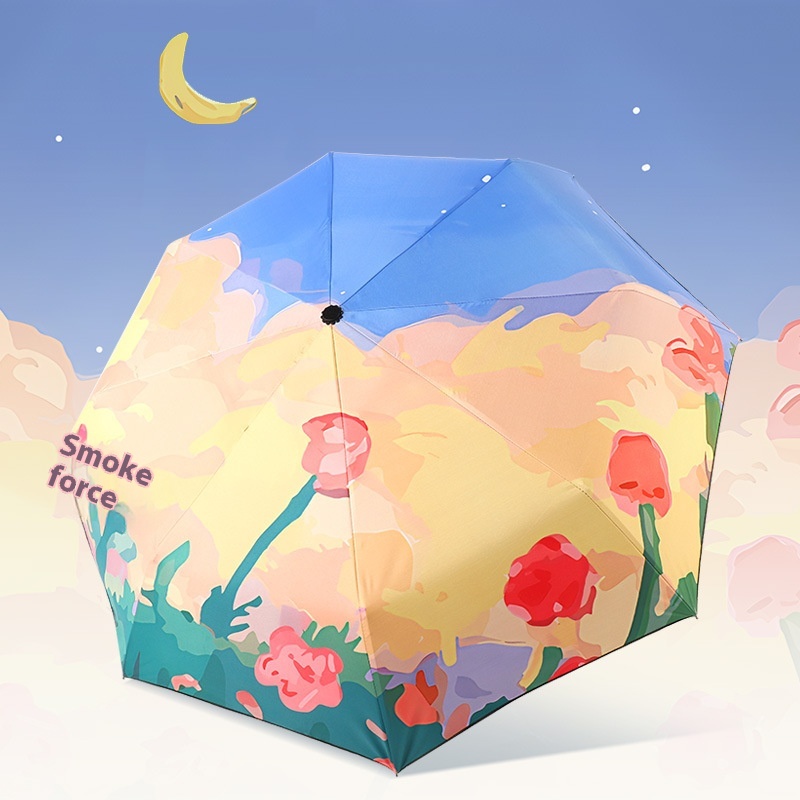 Style Sun Protection Folding Sunshade Black Plastic Sun Umbrella Female Anti-ultraviolet Oil Painting Umbrella Cartoon Fresh Umbrella