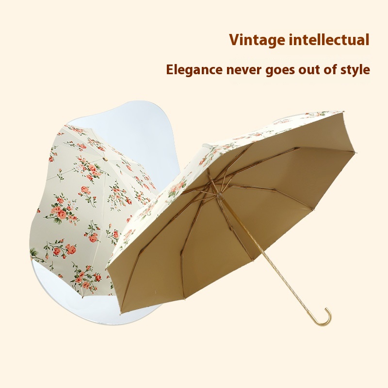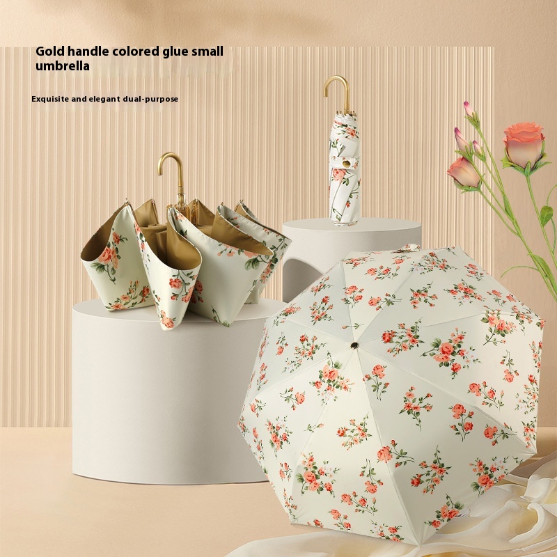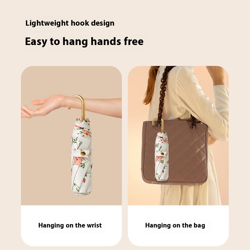 Hook Umbrella For Women,Sunny And Rainy,Retro Gold-glue Sun Umbrella For Girls,Anti-ultraviolet,Compact And Portable Sunscreen Umbrella