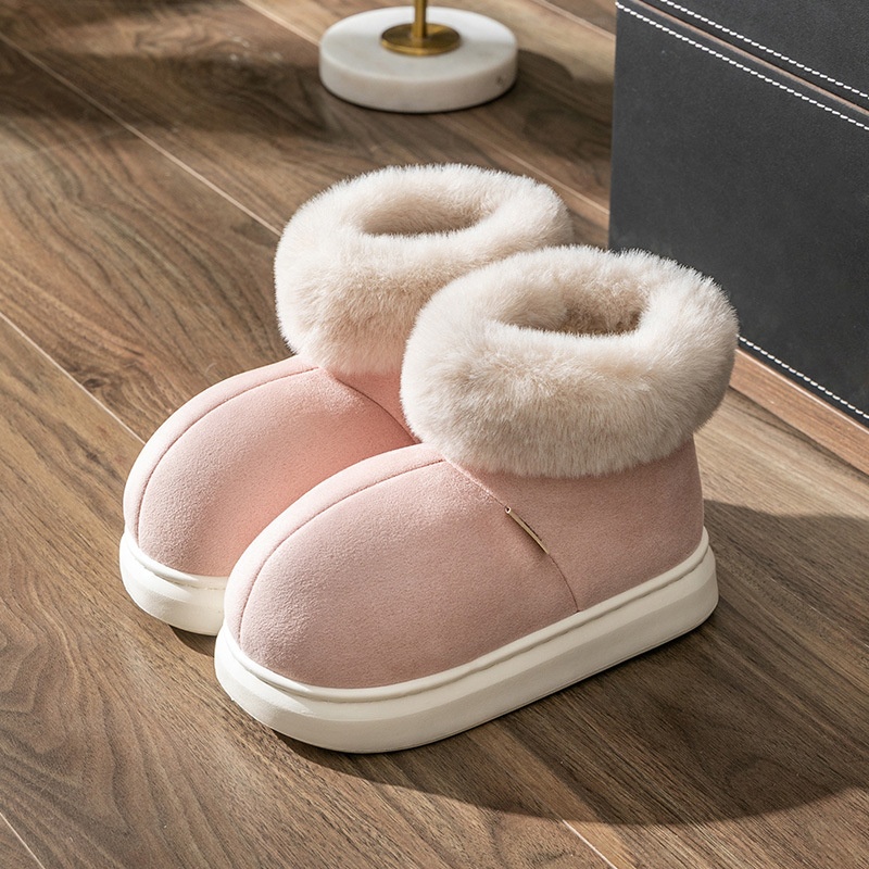 Douyin Internet Celebrity Hot Style Thick Sole Shit Feeling Warm Plus Velvet Home High Top Couple Cotton Slippers Home Confinement Shoes Women