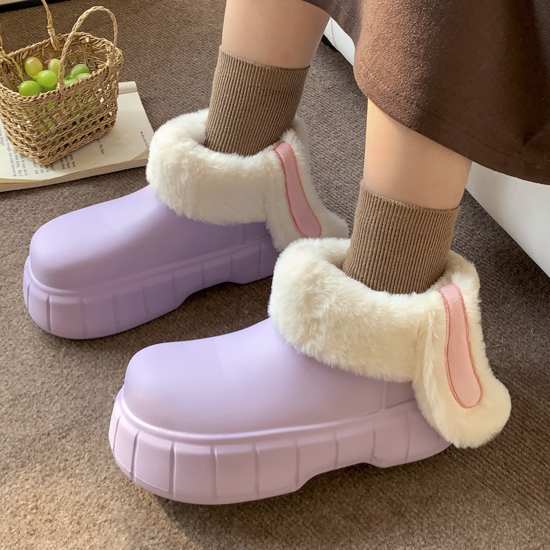 Cute Bunny Ears Detachable And Washable Cotton Shoes For Women Autumn And Winter Plus Velvet Warm Waterproof And Windproof Full Heel Confinement Shoes Overshoes