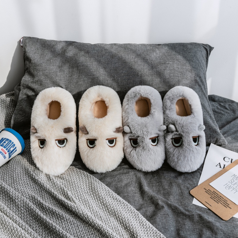 Heeled Cotton Slippers For Women Autumn And Winter Indoor Household Cotton Shoes Home Warm Confinement Shoes Couple Furry Cotton Shoes