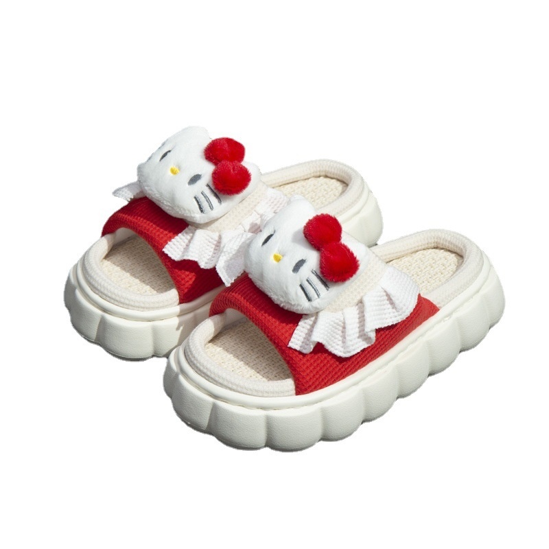 Spring And Summer Sanrio Cute Girl Linen Slippers Indoor Four Seasons Universal Breathable Thick Bottom Home Sandals