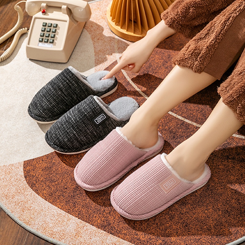 Autumn And Winter Simple Home Floor Slippers Women Indoor Warm Plus Velvet Thick Couple Cotton Slippers