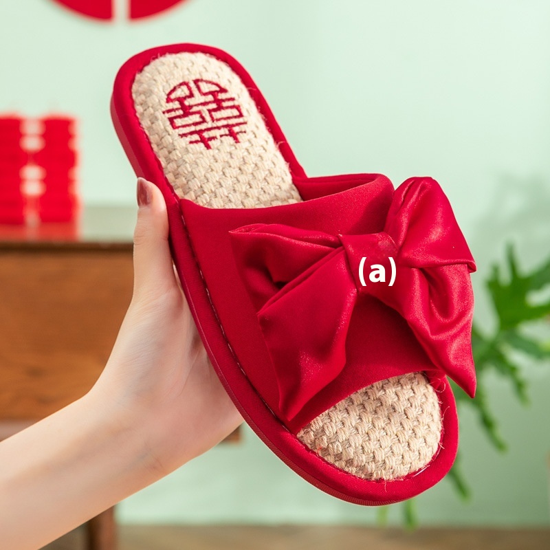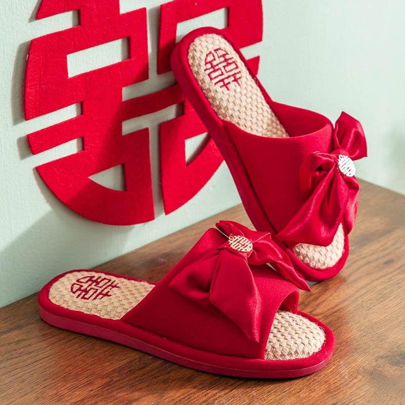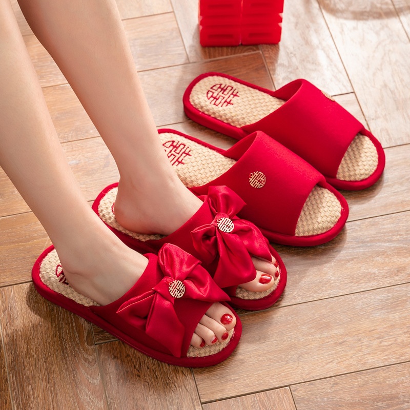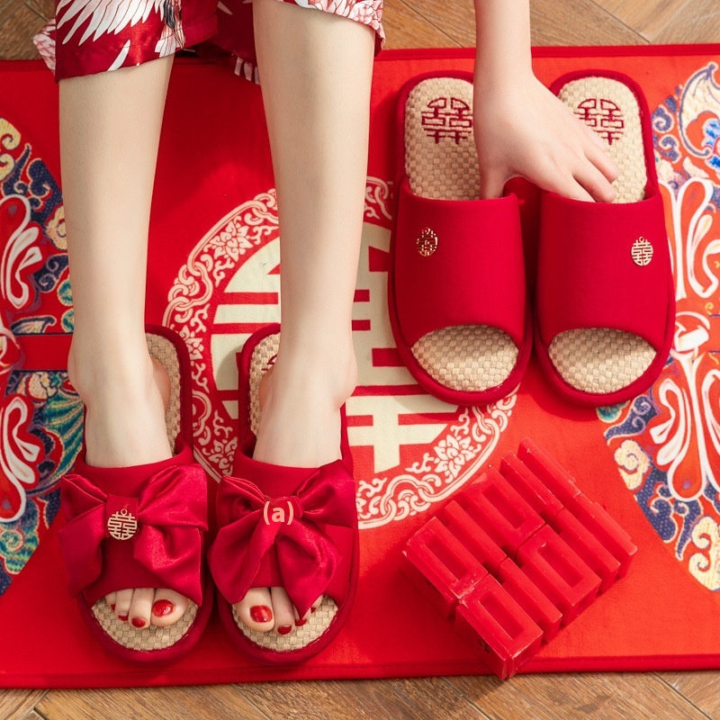 Festive Red Wedding Slippers For Men And Womenlyweds Couples Home Linen Slippers For Bride And Groom Slippers