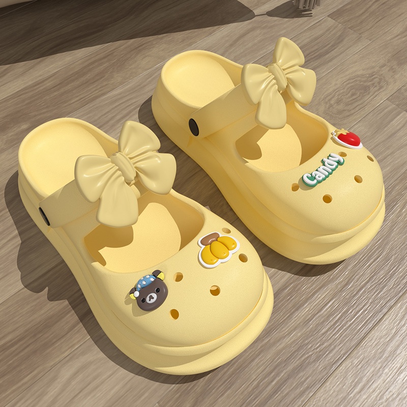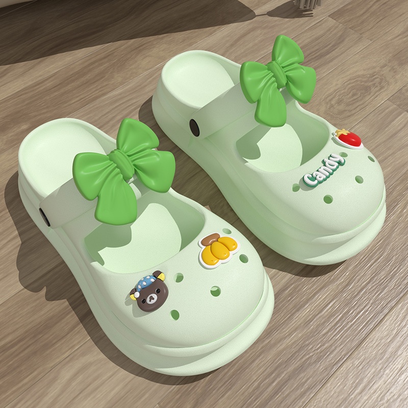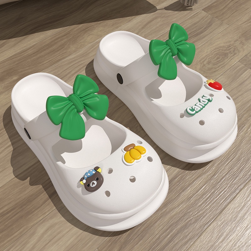 Internet Celebrity Girl Bowknot Big Head Hole Shoes Women Summer Indoor Home Thick Bottom Non-slip Student Outdoor Sandals