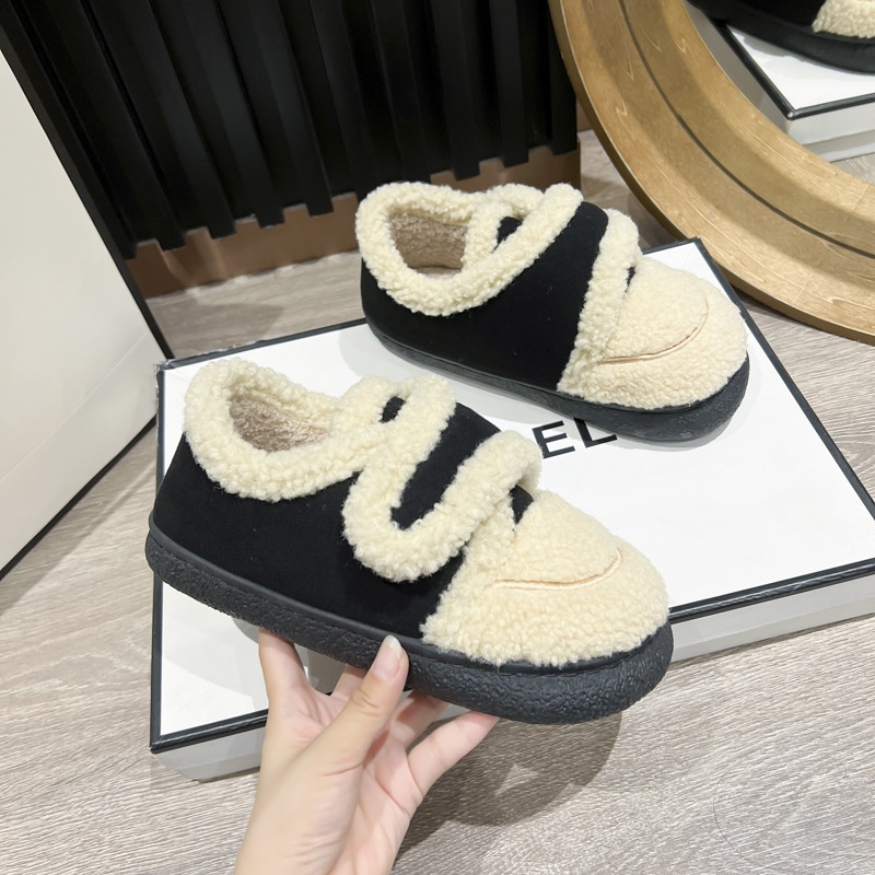 Heeled Cotton Slippers For Women Autumn And Winter Indoor Household Cotton Shoes Home Warm Confinement Shoes Couple Furry Cotton Shoes