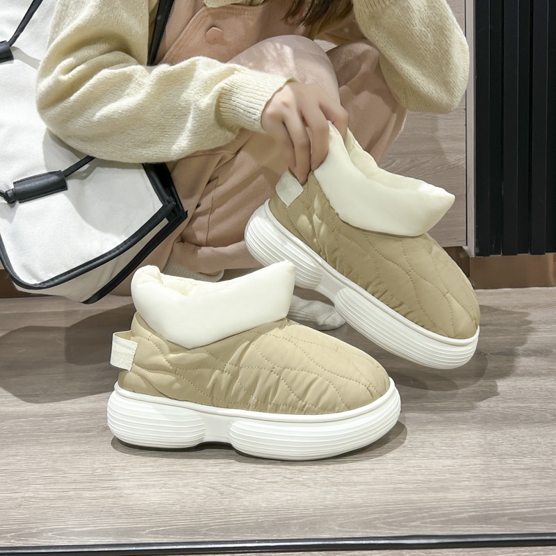 High-top Tie-string Plush Warm Cotton Shoes For Women In Autumn And Winter Indoor Home Confinement Shoes Thick-soled Shit-stepping Couple Cotton Shoes