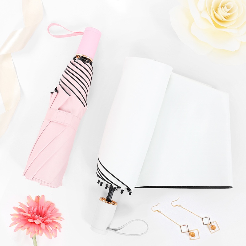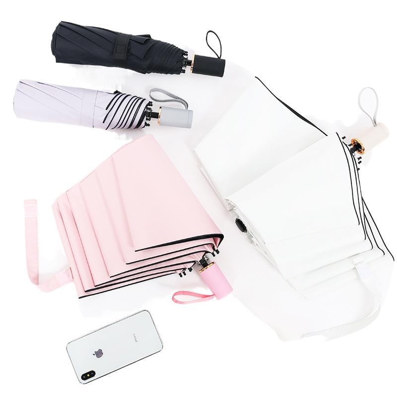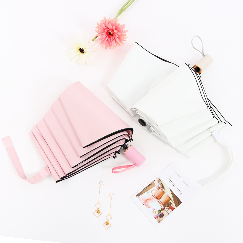 Three-fold Eight-rib Folding Sunny Umbrella Artistic Creative Sunny Umbrella Black Glue Sunscreen Parasol Windproof Reinforced