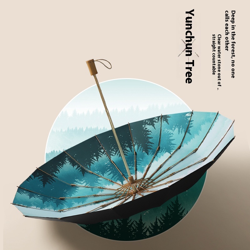 Ancient Style Black Plastic16 Bone Three-fold Umbrella Sunshade Sun Umbrella Small Fresh Sunscreen Anti-ultraviolet Female