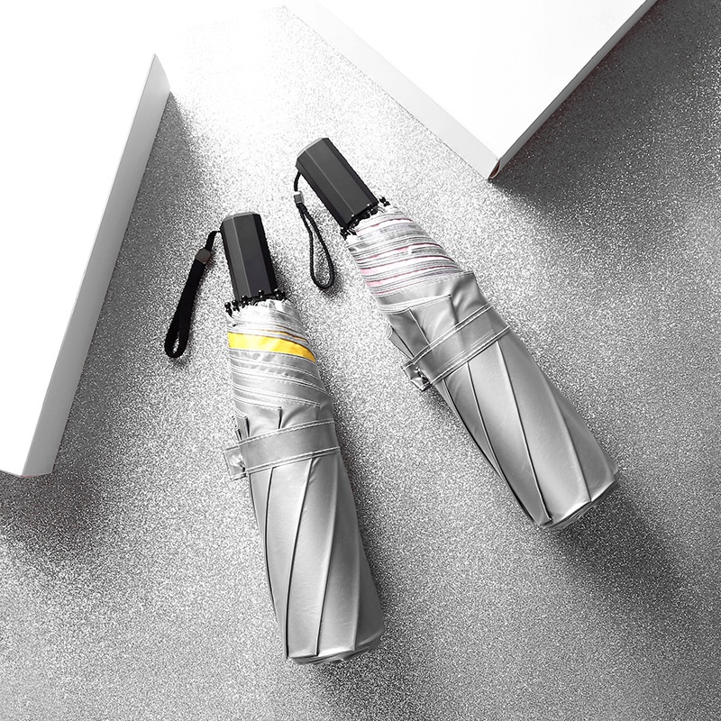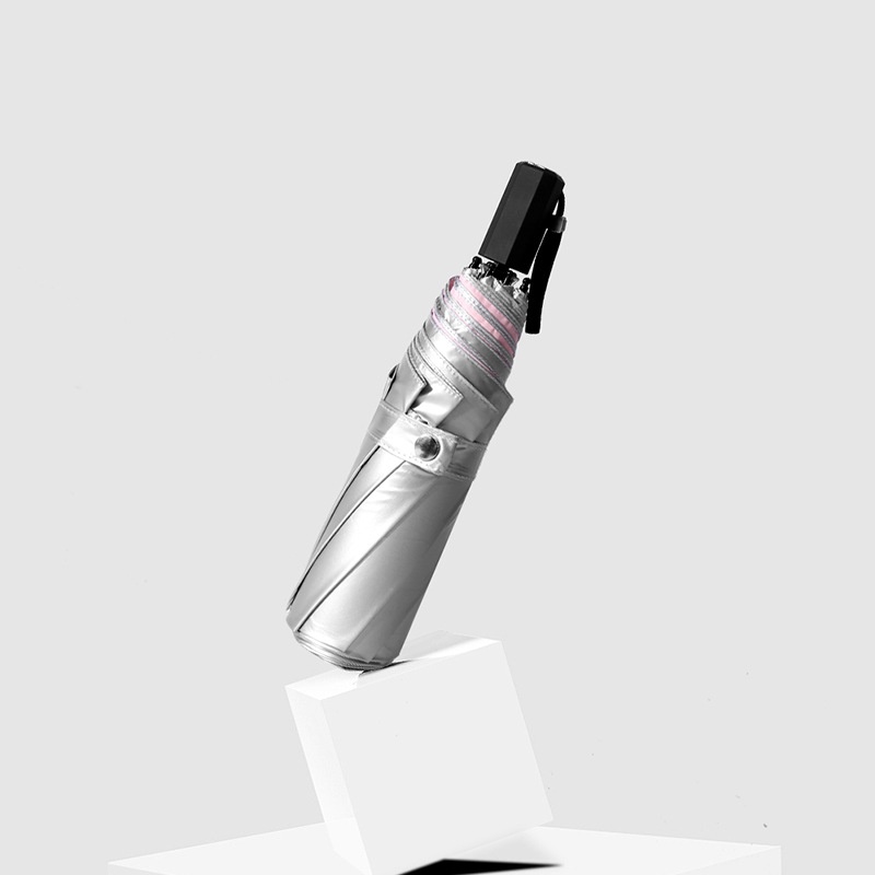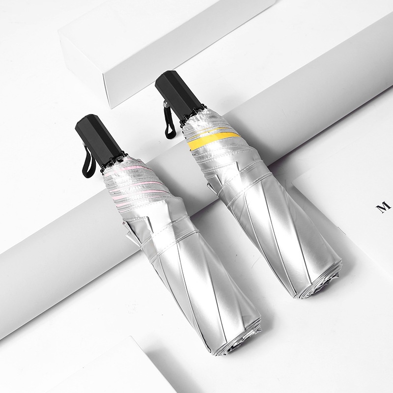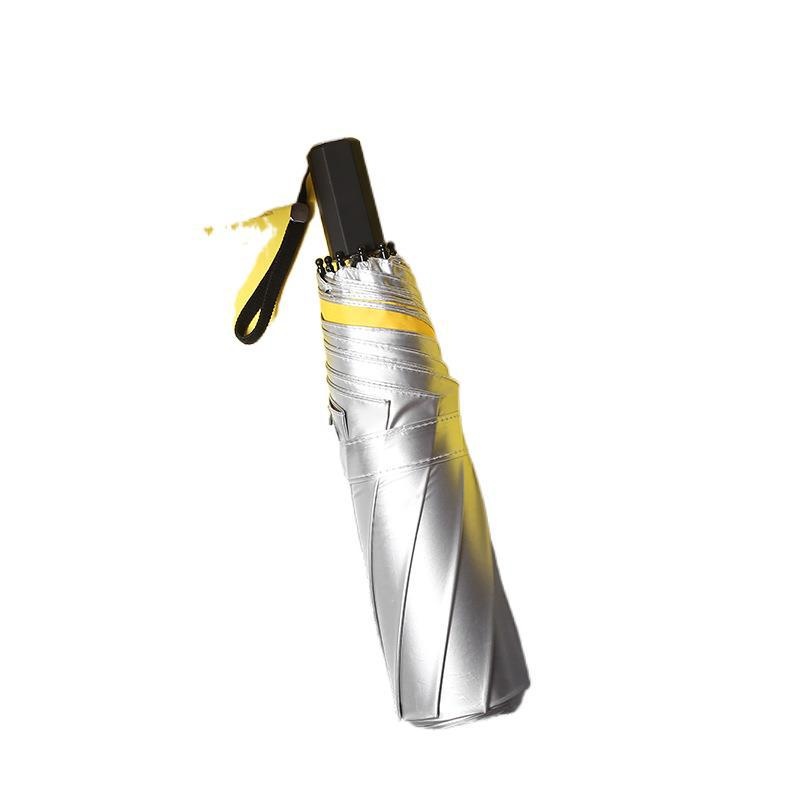 Titanium Silver Glue Three-fold Hand-open Umbrella Sun Protection Umbrella Small Fresh Pocket Sunny And Rainy Dual-use Black Glue Folding Umbrella