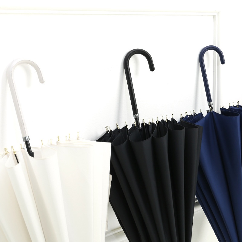 Japanese Style Small Fresh16 KStraight Pole Umbrella Long Handle Umbrella Simple Solid Color Creative Leather Handle Umbrella Retro Men And Women Umbrella