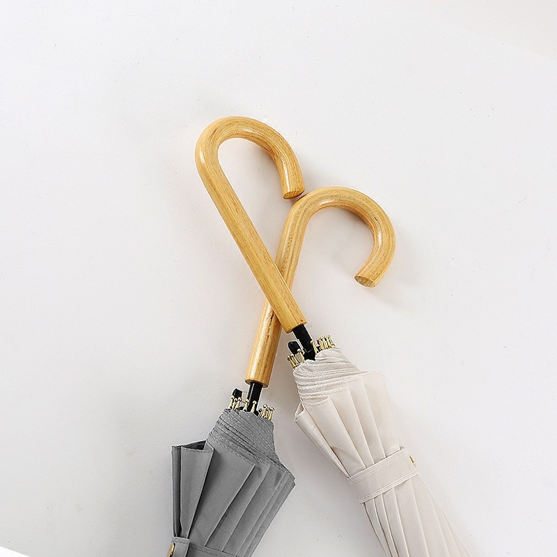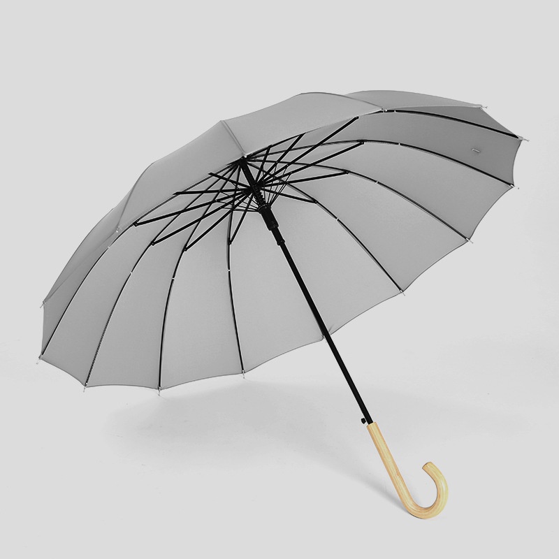 Long Handle16 Rib Umbrella Automatic Umbrella Reinforced Simple Small Fresh Wooden Handle Sunny Umbrella Advertising Umbrella Can Be Printed With