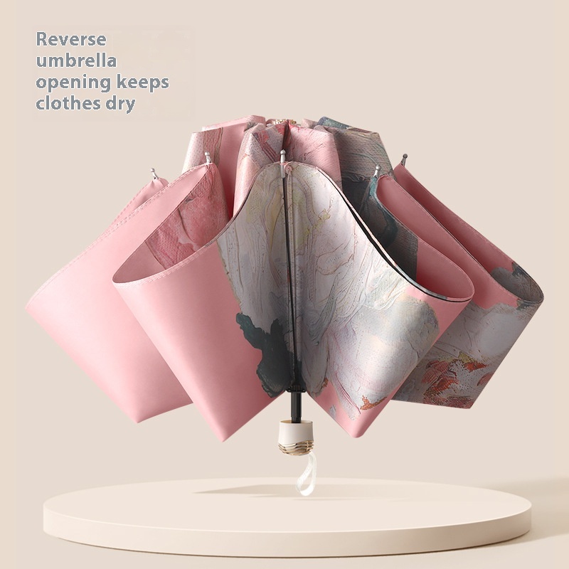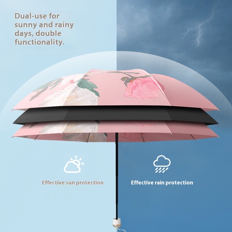 Xiaohongshu's Popular8-rib Tri-fold Hand-opened Black Plastic Double-layer Umbrella,Parasol,Hand-opened Sunny Umbrella,Supports One-piece Dery