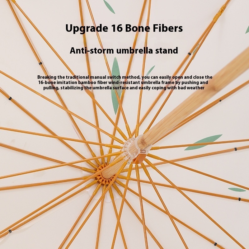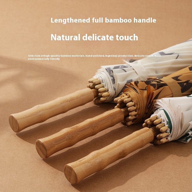 Chinese Style16 Bone Hand-open Bamboo Straight Umbrella Long Handle Bamboo Handle Umbrella With Printed Advertising Umbrella