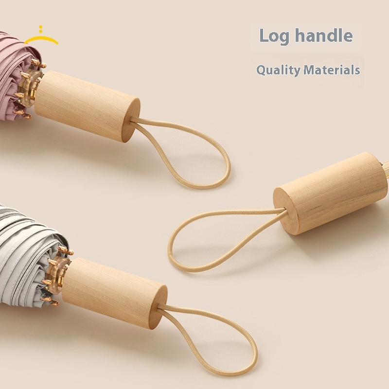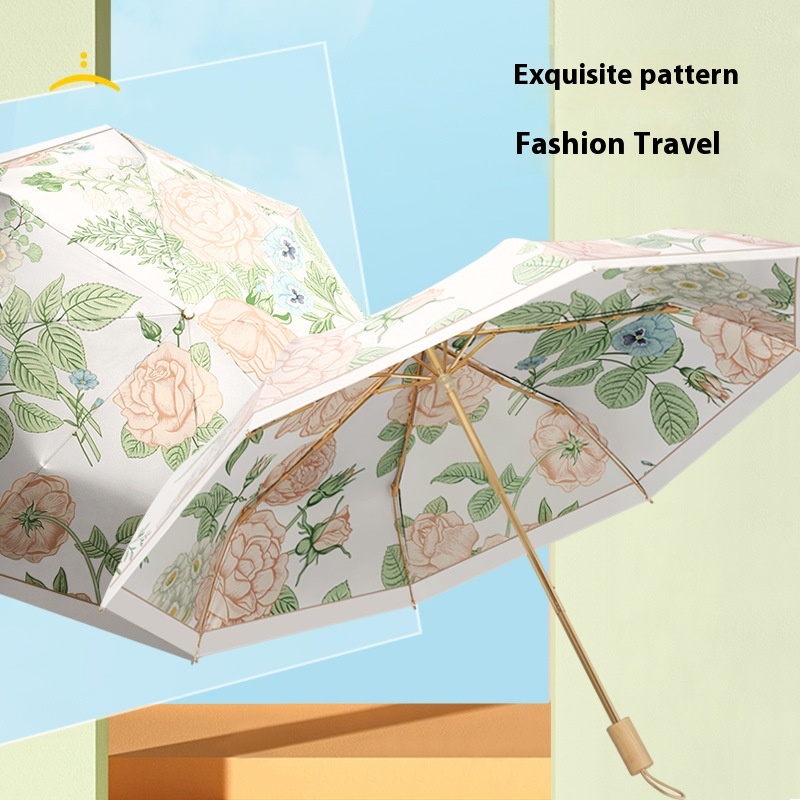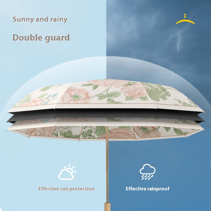 Three-fold8-rib Double-sided Floral Solid Wood Handle Simple Three-fold Sunny Umbrella