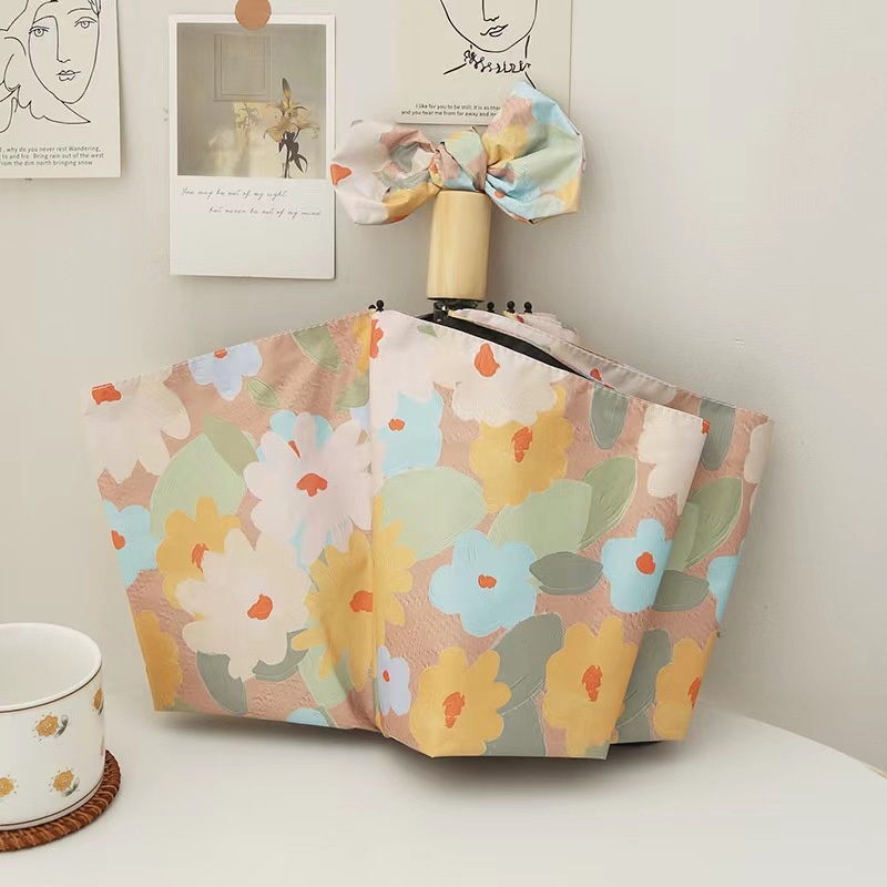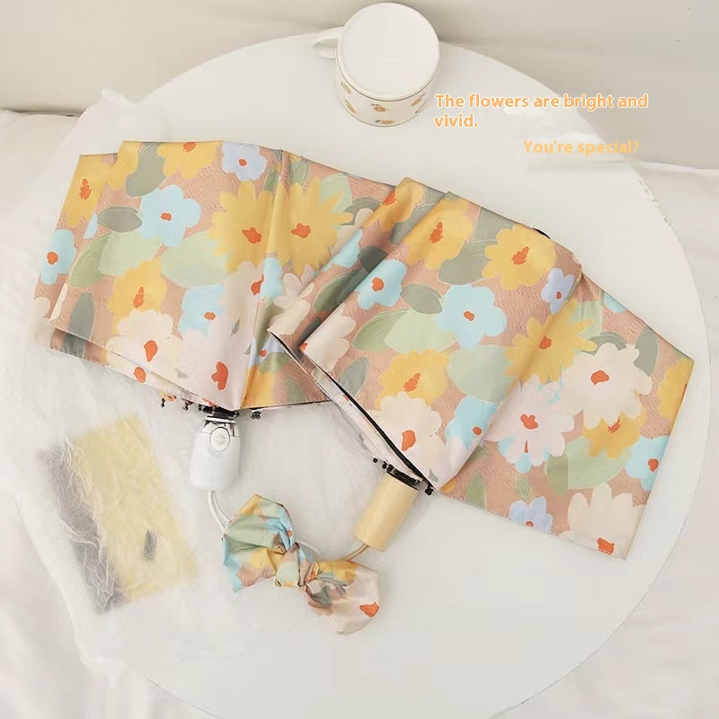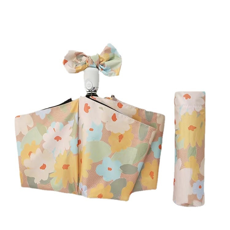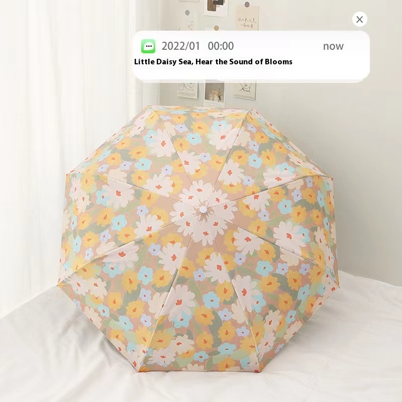 Japanese Style Three-fold Small Fresh Automatic Umbrella Small Daisy Bow Black Plastic Sunscreen Umbrella With Printed Advertising Umbrella