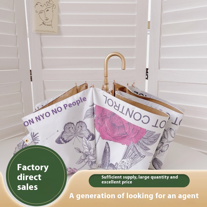 Curved Hook Color Glue Three-fold Umbrella Sunny And Rainy Dual-use Umbrella Hook Ladies Princess Lace Parasol Folding Umbrella