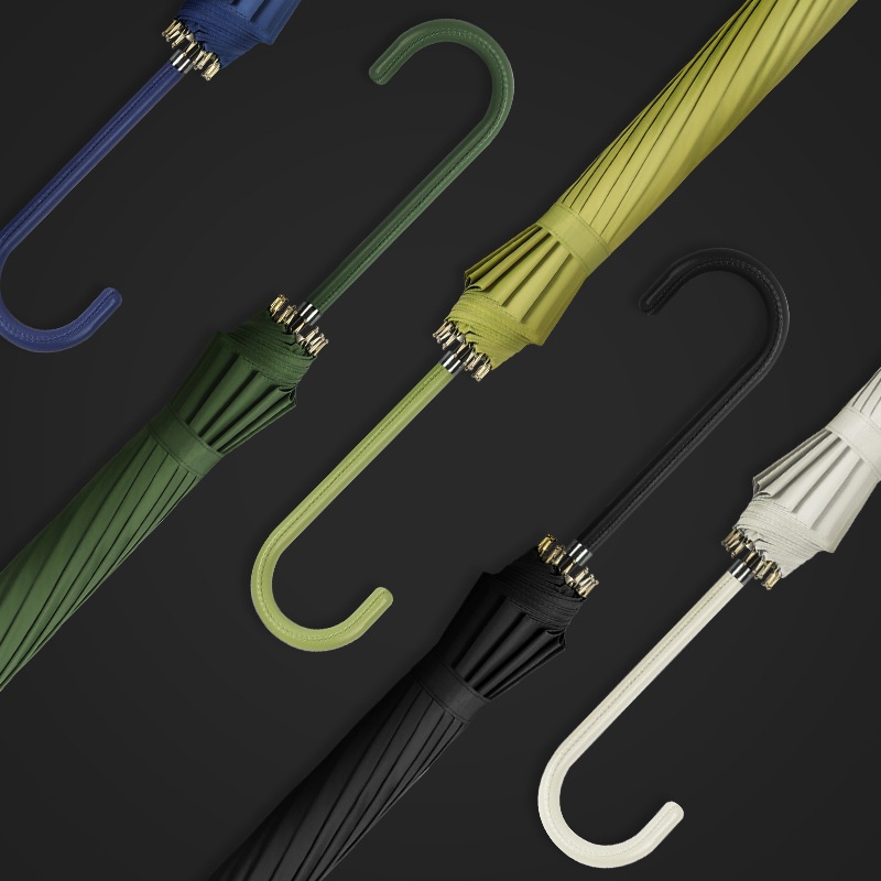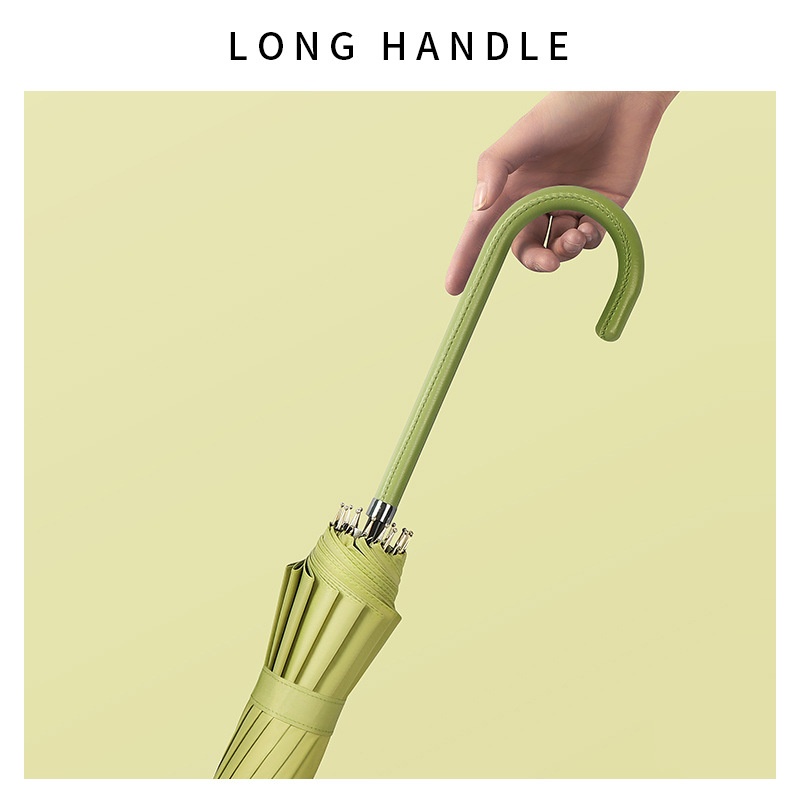 16 Bone Black Plastic Straight Pole Umbrella Color Matching Leather Curved Handle Sun Protection Rain Protection UVProtection Sunny And Rainy Dual-purpose