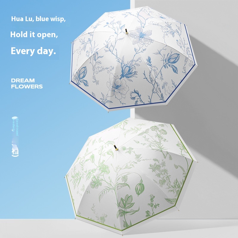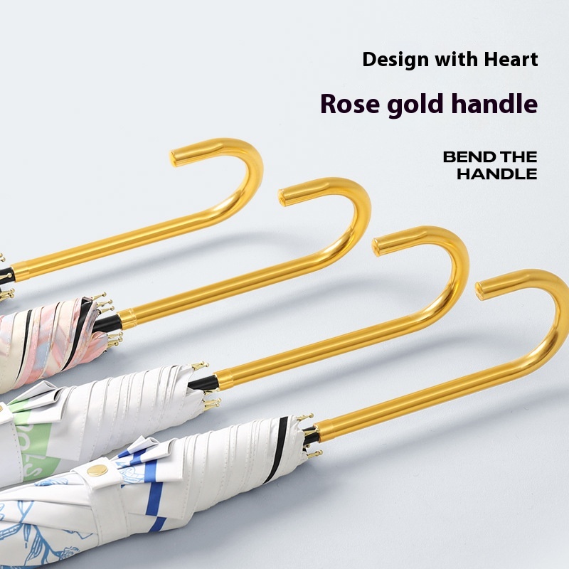 Straight Black Plastic Umbrella Long Handle Parasol Men And Women Business Leather Small Curved Handle Sunny And Rainy Dual-use Umbrella