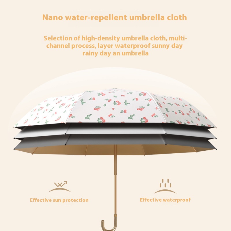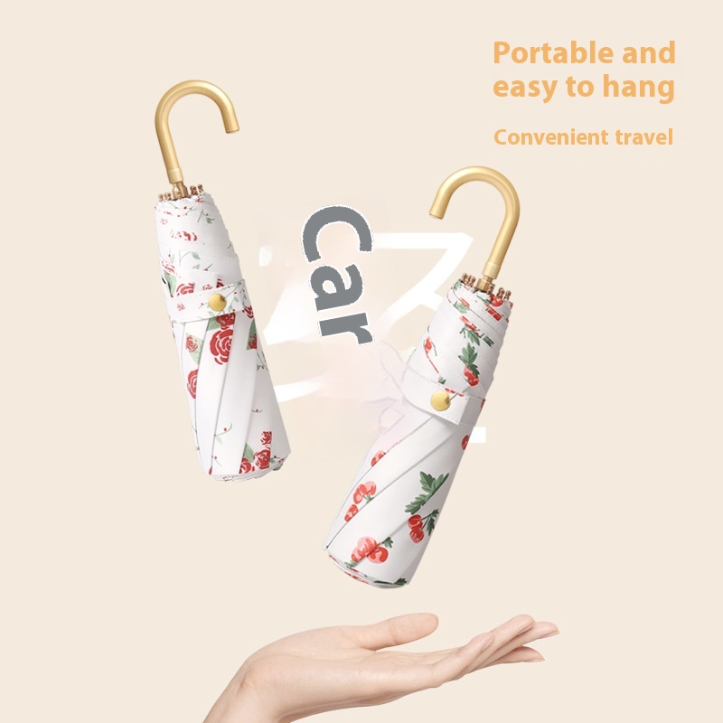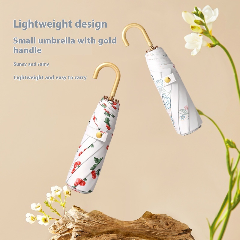 8 Bone Three Fold Hand-open Gold Glue Gold Frame Curved Handle Rainproof And UV-proof Sun Umbrella Supports One-piece