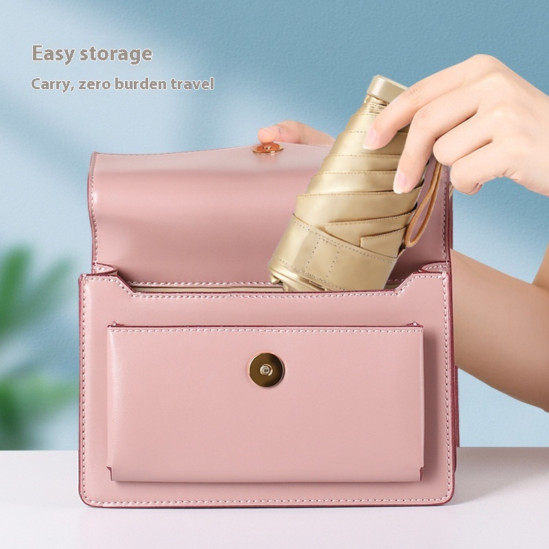 Bag Umbrella Flat60%Off Sun Protection Portable Women's Sunny And Rainy Dual-use Sun Protection Gold Glue Mini Parasol Pocket Sun Umbrella