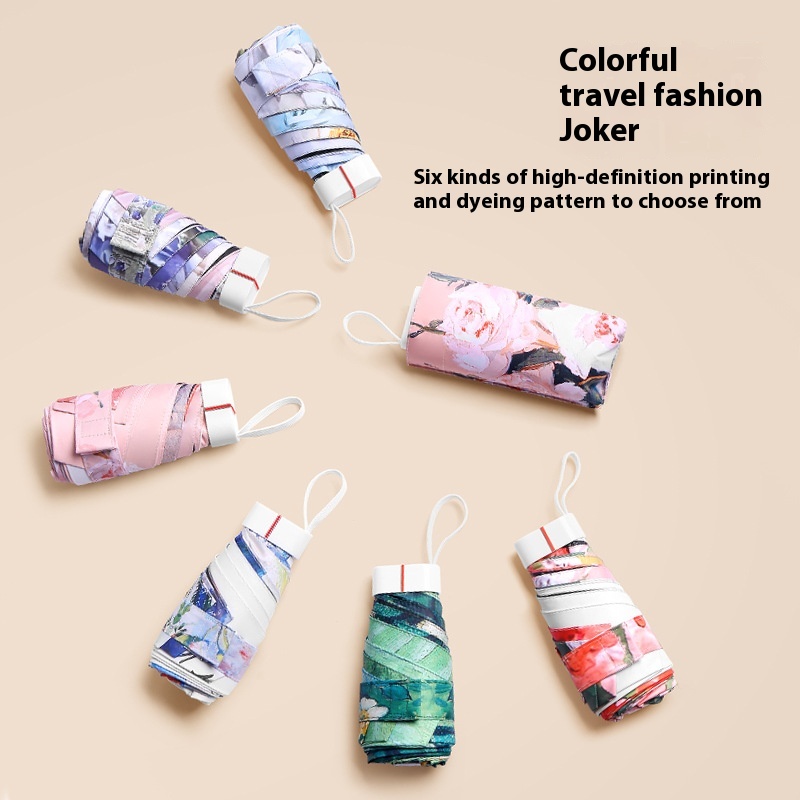 Flat60%Fold Card Umbrella For Women Sun Protection And UVProtection Parasol Small Fresh Umbrella Sunny And Rainy Dual-use Folding Umbrella