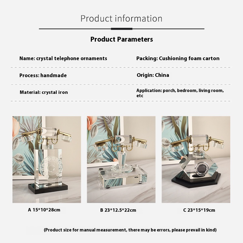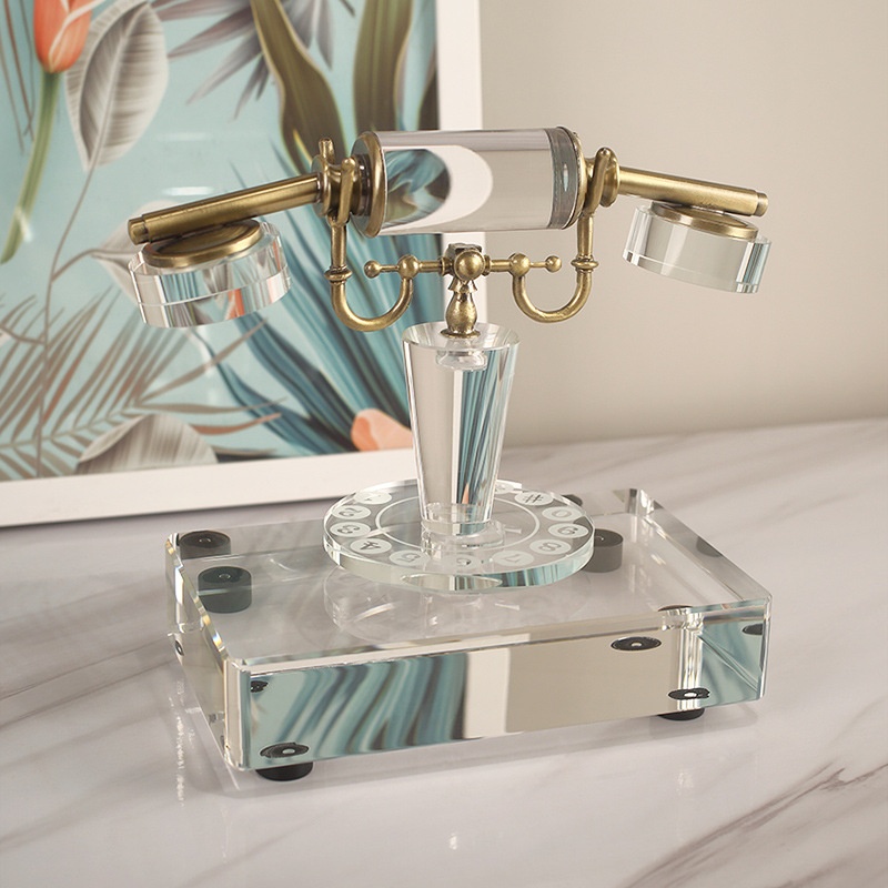Modern Light Luxury Creative Retro Crystal Telephone Props Model Room Sales Office Sales Center Desktop Decoration Ornaments