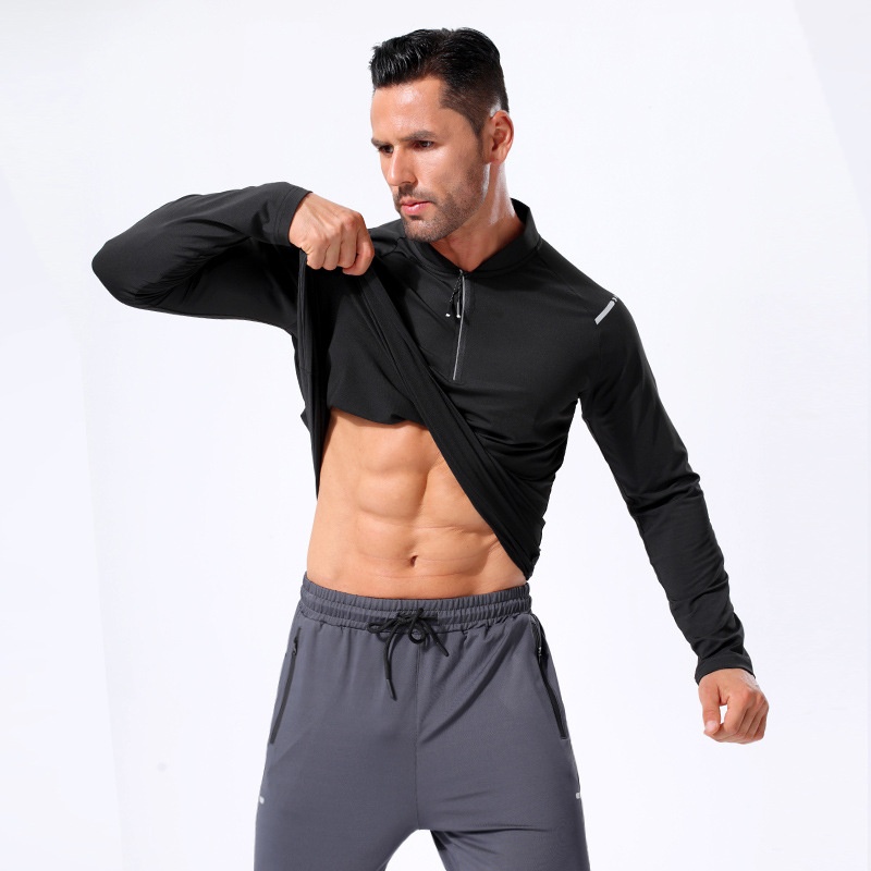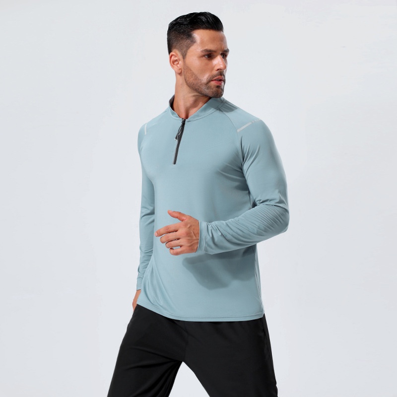 Quick-drying Clothing Men's Outdoor Sports Polo Shirt Half-zip T-shirt Stand-up Collar Long-sleeved Autumn And Winter Elastic Casual Fitness Clothes