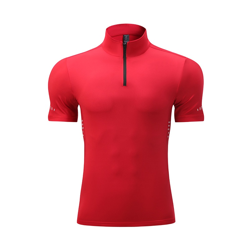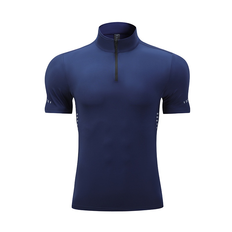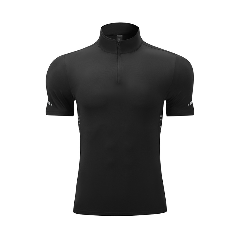 Summer Men's Sports Fitness Short-sleeved High Elastic Breathable Stand-up Collar Half-zip Tennis Quick-drying Clothing T-shirt Can Print Log