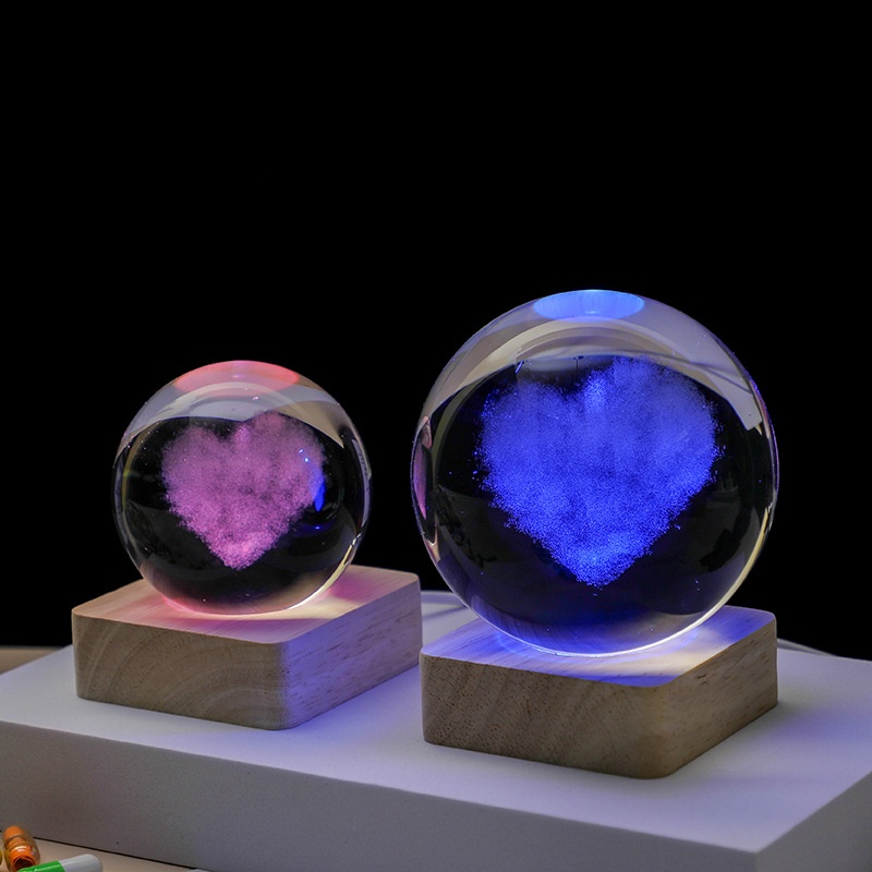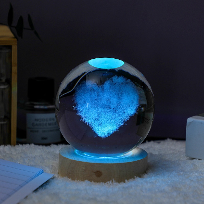 3 DSimulation Love Cloud Decoration Ornaments Simple Desktop Crystal Ball Luminous Night Light Creative Inner Carving Craft Ornaments