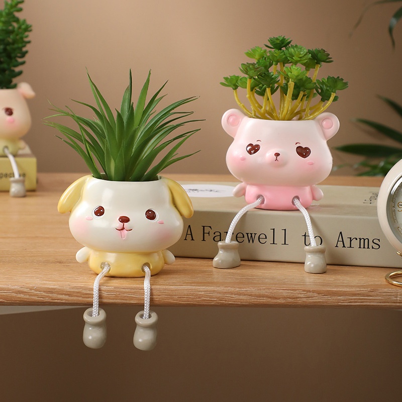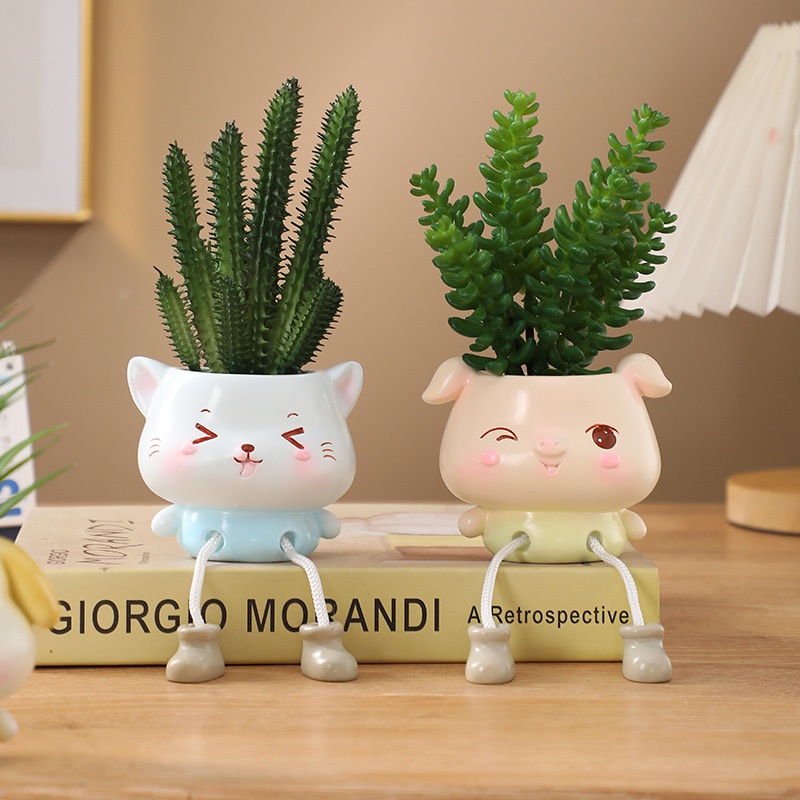 Cute Plant Potted Hanging Animal Ornaments Desktop Creative Green Plant Decoration Flower Pot Practical Resin Crafts