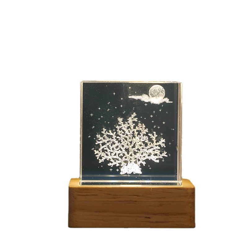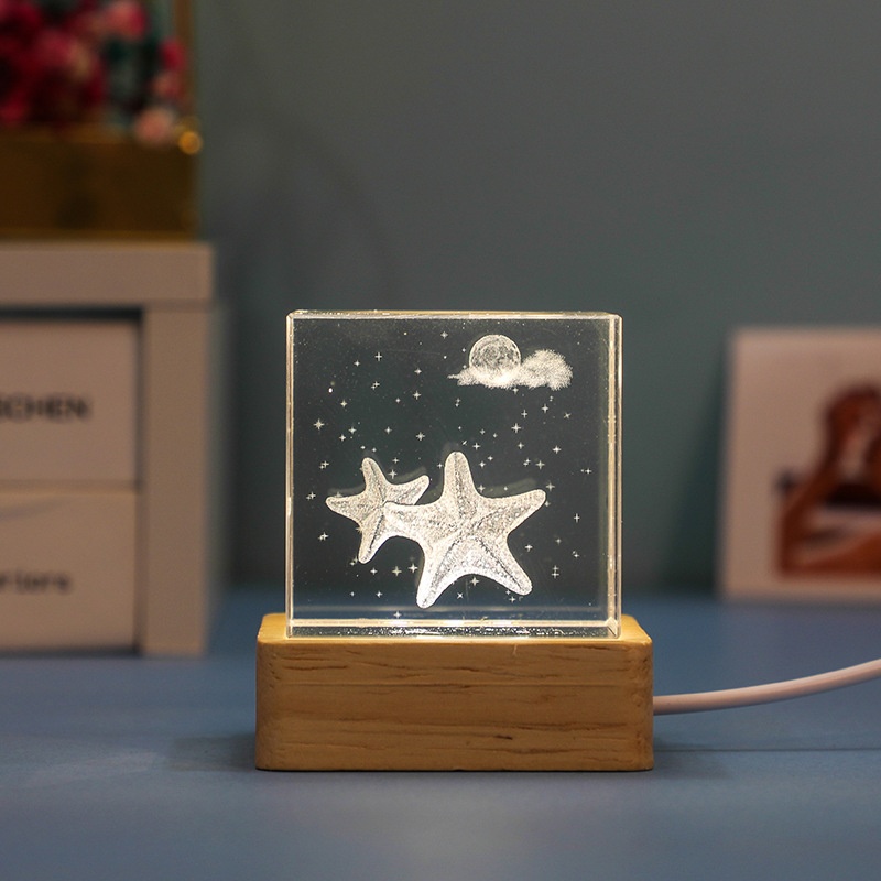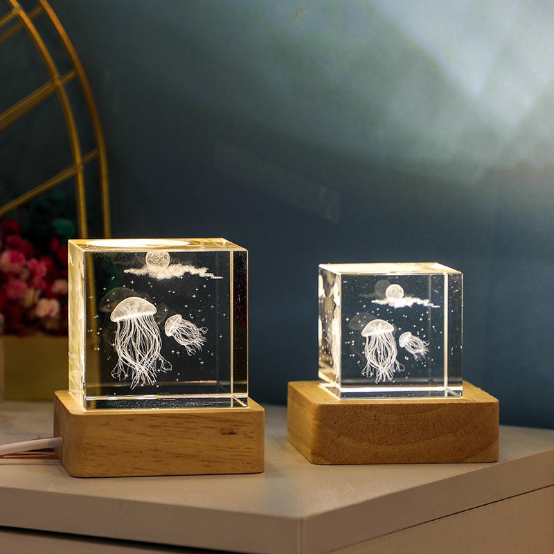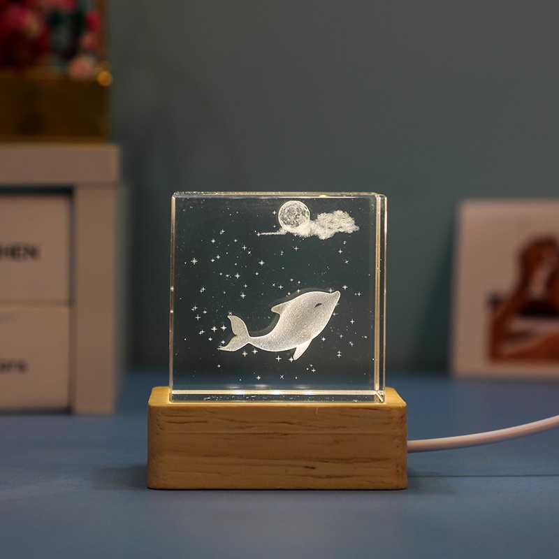 Crystal Cube Carved Ornaments3 DDolphin Starfish Jellyfish Cube Crafts Night Light Ornaments