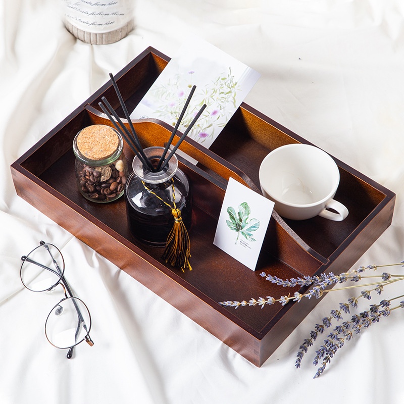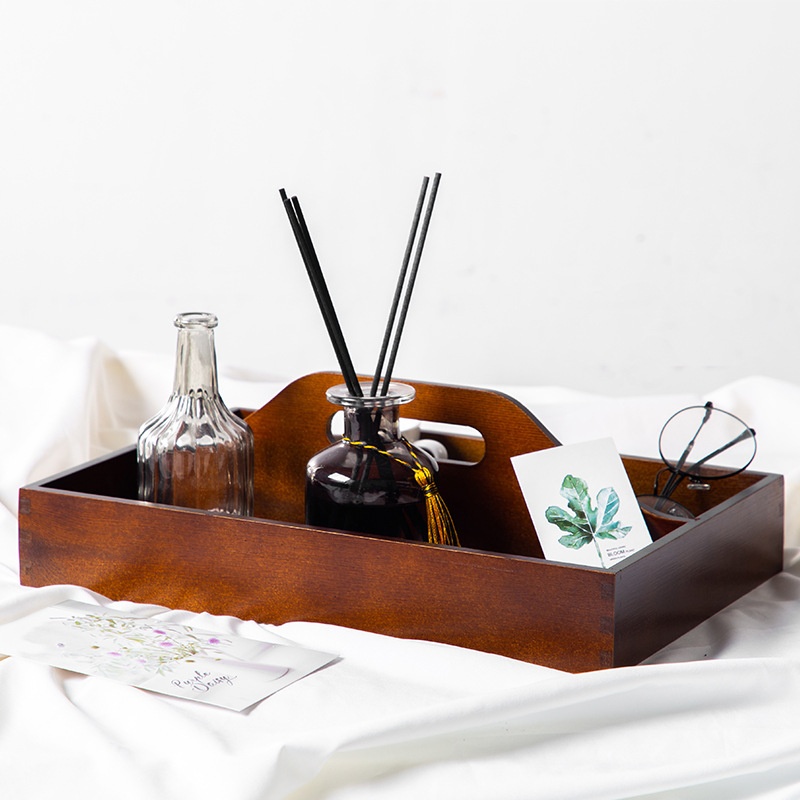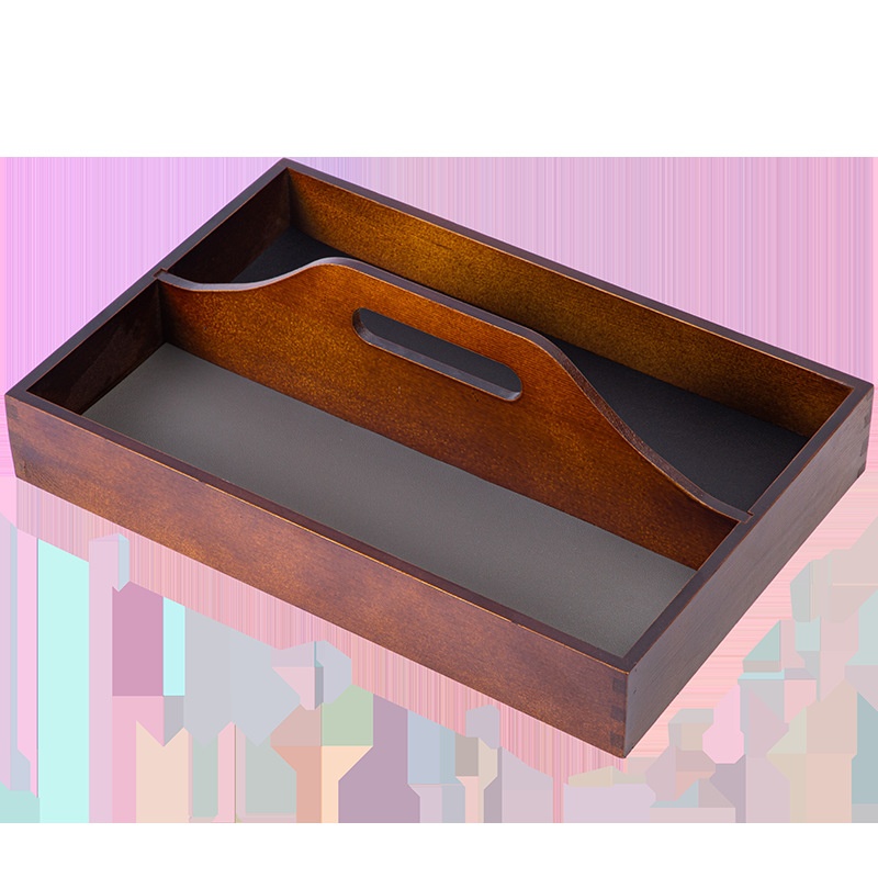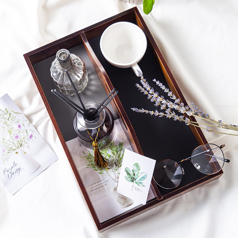Retro Pine Wood Handle Storage Box Living Room Coffee Table Multifunctional Partition Creative Leather Tray Storage Box