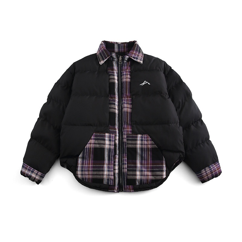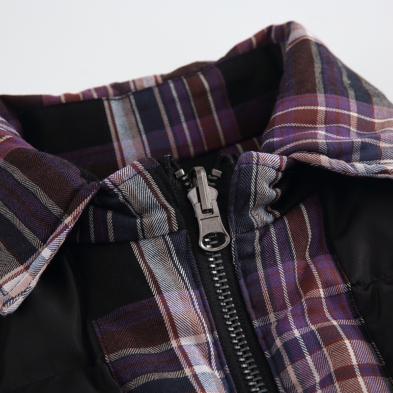 FORN322 Winter Men's Full Print Plaid Double-sided Lapel Long-sleeved Cotton-padded Jacket Japanese Retro Youth Jacket Shirt