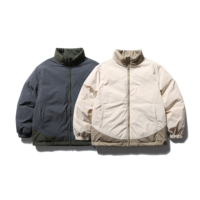 FORN3 Winter Loose Neutral Warm Cotton Coat Japanese Retro Contrast Color Stitching Stand Collar Cotton Coat Men