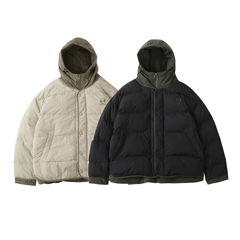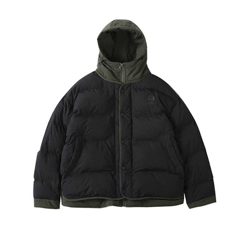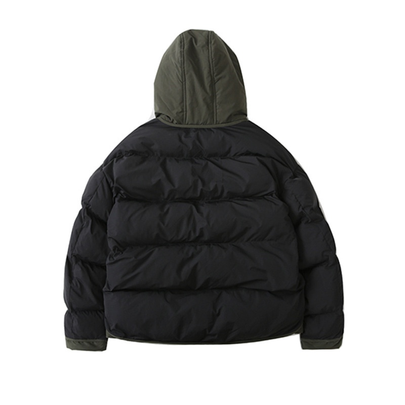 FORN3 Winter Colorblock Fake Two-piece Hooded Cotton Jacket Japanese Retro Embroidery Wide Version Loose Cotton Jacket Men's