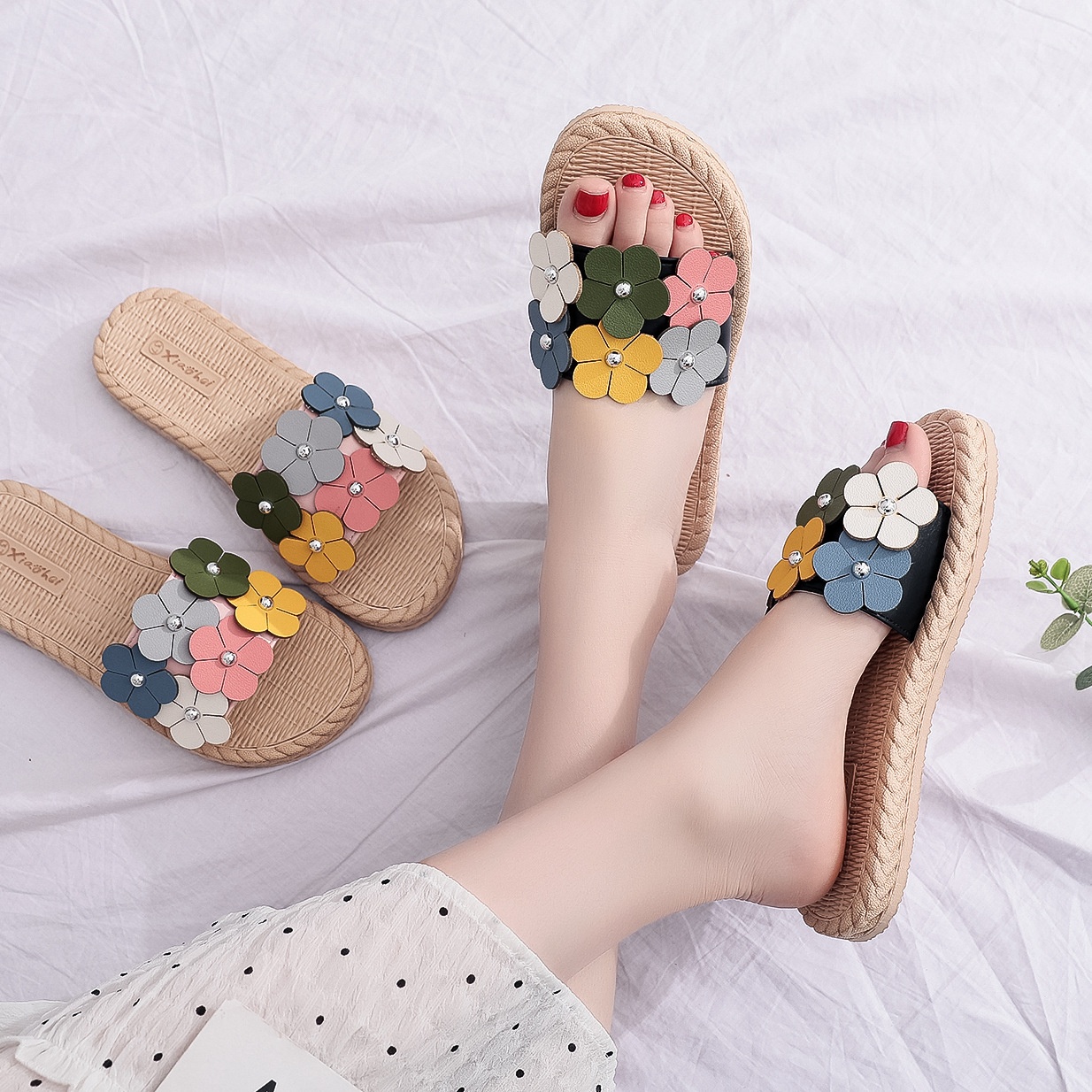 Slippers For Girls To Wear Outside,Fashionable Summer Light Vacation Beach Shoes,Casual Eva Imitation Straw Shoes,Flat Sandals